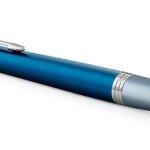 Kuličkové pero Parker Royal Urban Premium Dark Blue CT má metalické modré tělo z broušeného hliníku. Pískováním upravený úchop má světle modrou barvu. Doplňky jsou pokovené chromem. Stiskací mechanismus pro vysunutí velkokapacitní náplně. Dodáváno v dárkové krabičce.