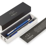 Parker Royal Vector Blue je roller z modrého tvrzeného plastu se zdobením z ušlechtilé nerezové oceli. celý popis