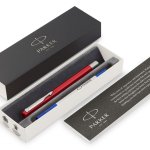 Parker Royal Vector Red je roller z červeného tvrzeného plastu se zdobením z ušlechtilé nerezové oceli. celý popis