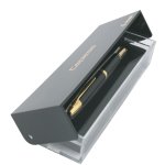 Kvalitní plnicí pero v elegantním designu v černé barvě s doplňky pozlacenými 23 karátovým zlatem. Pero je unikátní svým vysunovacím hrotem z 18 karátového zlata pokoveným rhodiem. Hrot se vysouvá tlačítkovým mechanismem. Zatažený hrot uzavírá klapka uvnitř odšroubovatelného dílu s klipem, která zabraňuje vysychání inkoustu a vnikání prachu do pera. Klip navíc vymezuje správné držení pera při psaní. Pero nemá víčko - není díky své konstrukci potřeba. Plnicí pero Capless je vybavené systémem na bombičky i na konvertor, který je součástí balení. Dodáváno v luxusní dárkové krabičce.