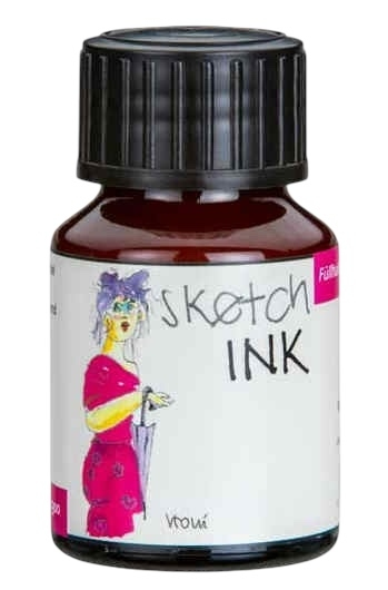 Prvotřídní inkoust Sketchink od Rohrer & Klingner v růžové barvě. Je velmi všestranný - lze jej použít nejen v plnicích perech, ale také se štětci nebo kaligrafickými brky. Je vyjímečně voděodolný a světlostálý. Pro optimální tok inkoustu jsou použity nano pigmenty. Díky tomu Sketchink ideální pro kreslení jemných obrysů. Při míchání s vodou lze vytvořit brilantní odstíny, což z něj dělá ideálního společníka pro Urban Sketchers. Ocení ho také designéři, grafici a architekti. Dodáváno ve skleněné lahvičce. Objem 50 ml.
