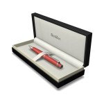 Kuličkové pero Scrikss Chic s mosazným tělem v červené lakové úpravě a s pochromovanými doplňky. Neobvykle vysoká vrchní část pera nad klipem. Otočný mechanismus pro vysunutí náplně. Dodáváno v dárkové krabičce.