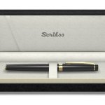 Plnicí pero Scrikss s mosazným tělem lakovaným několika vrstvami černého laku. Doplňky jsou pozlacené 23 karátovým zlatem. Klip je také pozlacený. Pero má ideální vyvážení. Hrot s iridiovou špičkou je vyrobený z nerezové ocele, je pozlacený a je v nabídce pouze v šířce M - střední. Pero je vybavené systémem na bombičky i na plnění konvertorem. Součástí balení je konvertor a 2 modré bombičky. Dodáváno v dárkové krabičce.