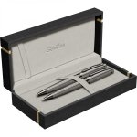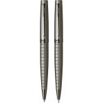 Dárková sada kuličkového pera a mechanické tužky Honour v šedé lakové úpravě. Těla per jsou zdobena liniemi, které dotváří moderní vzhled per. Dodáváno v dárkové krabičce.