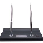 Stolní set kuličkového a plnicího pera s dřevěným stojanem v titanové barvě. celý popis