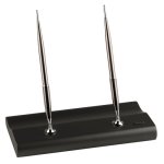 Stolní set kuličkového a plnicího pera s dřevěným stojanem v titanové barvě. Pera jsou šedé povrchové úpravě, doplňky jsou pochromované. Set je vhodný na recepce firem, hotelů a do kanceláří. Dodáváno v dárkové krabičce s logem Scrikss.