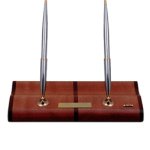 Stolní set kuličkového a plnicího pera se stojanem z lakovaného ořechového dřeva. Pera jsou pochromovaná, doplňky jsou pozlacené. Set je vhodný na recepce firem, hotelů a do kanceláří. Dodáváno v dárkové krabičce s logem Scrikss.