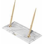 Elegantní a moderní stolní set kuličkového a plnicího pera se základnou z bílého mramoru. Pera jsou vyrobena z mosazi a pokovená 23k zlatem. Klipy per jsou pružné a vyrobené z nerezové oceli a jsou také pozlacené. Plnicí pero má pozlacený, nerezový hrot s iridiovou špičkou. Je v šířce M - střední. Pero je vybavené systémem na bombičky i na plnění konvertorem. Standardně jsou v balení 3 modré bombičky, konvertor je nutné v případě zájmu dokoupit. Set je vhodný na recepce firem, hotelů a do kanceláří. Dodáváno v dárkové krabičce s logem Scrikss.