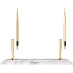 Elegantní a moderní stolní set kovového kuličkového a plnicího pera se základnou z bílého mramoru. celý popis