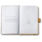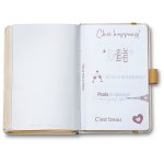 Zápisník ve velikosti A6 je jako deník s francouzským akcentem. Pevná vazba, hladké stránky a decentní Eiffelovka na obálce vám každý den připomenou, že i běžné poznámky mohou vypadat výjimečně. Uvnitř čeká 144 stran kvalitního papíru (90 g/m²), co snese i výraznější tahy a nepropíjí. Zlatý okraj, dvojité záložky, gumička, poutko na pero, vnitřní kapsa – každý detail má své místo a dává smysl. A navrch? Samolepky a kartička, co potěší každou romantickou duši.