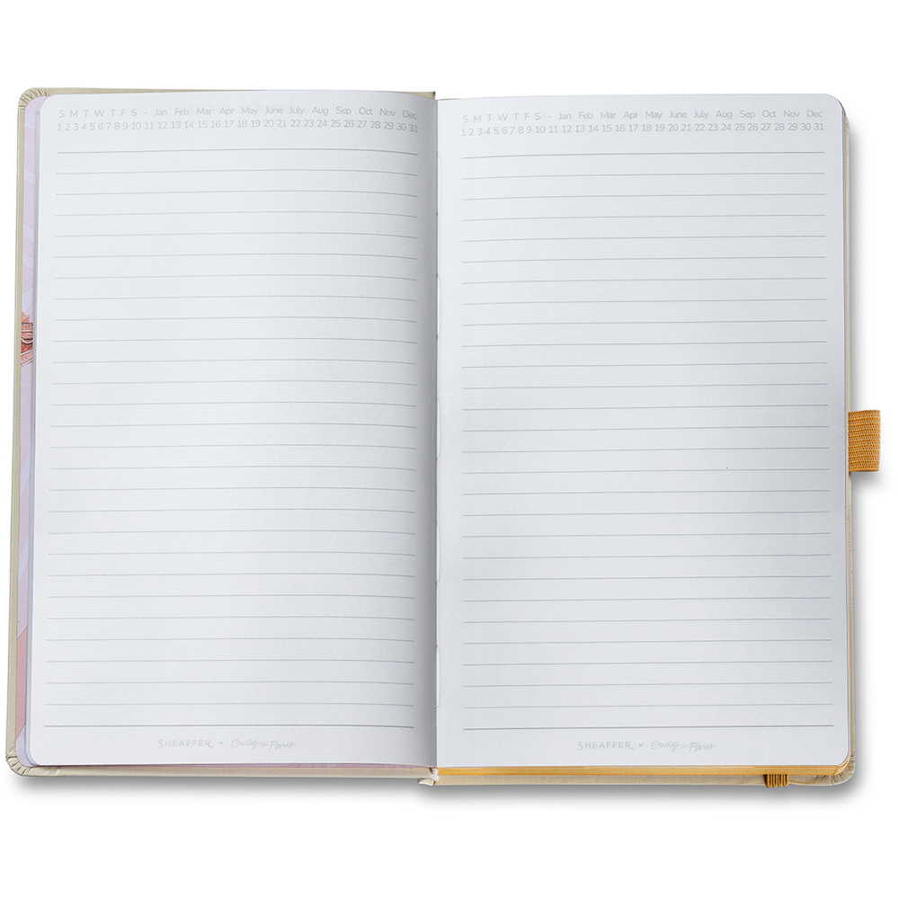Sheaffer Gold Emily in Paris zápisník ve velikosti A5 je jako deník s francouzským akcentem. Pevná vazba, hladké stránky a decentní Eiffelovka na obálce vám každý den připomenou, že i běžné poznámky mohou vypadat výjimečně. Uvnitř čeká 192 stran kvalitního papíru (90 g/m²), co snese i výraznější tahy a nepropíjí. Zlatý okraj, dvojité záložky, gumička, poutko na pero, vnitřní kapsa – každý detail má své místo a dává smysl. A navrch? Samolepky a kartička, co potěší každou romantickou duši.