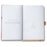 Sheaffer Gold Emily in Paris zápisník ve velikosti A6 je jako deník s francouzským akcentem. Pevná vazba, hladké stránky a decentní Eiffelovka na obálce vám každý den připomenou, že i běžné poznámky mohou vypadat výjimečně. Uvnitř čeká 144 stran kvalitního papíru (90 g/m²), co snese i výraznější tahy a nepropíjí. Zlatý okraj, dvojité záložky, gumička, poutko na pero, vnitřní kapsa – každý detail má své místo a dává smysl. A navrch? Samolepky a kartička, co potěší každou romantickou duši.