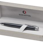 Luxusní kovové kuličkové pero značky Sheaffer zaujme moderním a stylovým vzhledem. Laková povrchová úpravá černé barvy a leskle chromované doplňky dodávají peru na eleganci. Pružný klip s typickou bílou tečkou, úzký kroužek s logem značky Sheaffer. Otočný mechanismus pro vysunutí náplně. Pero je dodáváno v dárkové krabičce.