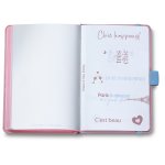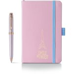 Zápisník ve velikosti A6 je jako deník s francouzským akcentem. Pevná vazba, hladké stránky a decentní Eiffelovka na obálce vám každý den připomenou, že i běžné poznámky mohou vypadat výjimečně. Uvnitř čeká 144 stran kvalitního papíru (90 g/m²), co snese i výraznější tahy a nepropíjí. Růžový okraj, dvojité záložky, gumička, poutko na pero, vnitřní kapsa – každý detail má své místo a dává smysl. A navrch? Samolepky a kartička, co potěší každou romantickou duši.
