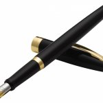 Černě lakované štíhlé plnicí pero Sagaris s pozlacenými doplňky a klipem. celý popis