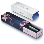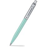 Povrch spodní části pera je upraven matným zeleným lakem s jemným leskem. Na klipu najdete decentní emblém ve tvaru srdce, který odkazuje na charakteristický styl seriálové Emily. Středový kroužek zdobí logo Emily in Paris. Díky spolehlivému stiskacímu mechanismu a celokovovému mosaznému tělu vydrží i náročnější pracovní tempo. Bonus? Pěkná dárková krabička s květinovým vzorem.