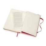 Skicář Moleskine je určený především na kresby, skici a malby. Má pevnou vazbu v červených kartonových deskách. Skicář obepíná pružná červená páska proti samovolnému otevírání. Obsahuje také praktickou vnitřní kapsu na vizitky a drobnosti vyrobenou z tkaniny a kartonu, textilní záložku a anglický leták s historií značky Moleskine.