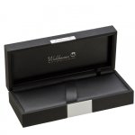 Kvalitní kuličkové pero s víčkem z mincovního stříbra (ryzost 925/1000) pozlacené 18-ti karátovým zlatem. Zdobené jemnými úzkými liniemi. Pružný klip z nerez oceli i mosazné doplňky jsou také pozlacené. Otočný mechanismus pro vysunutí velkokapacitní náplně. Dodáváno v luxusní dárkové krabičce i včetně leštícího hadříku.
